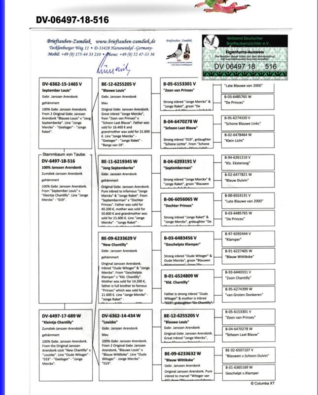 Gołębie Janssen Koopman Van Loon od MISTRZA